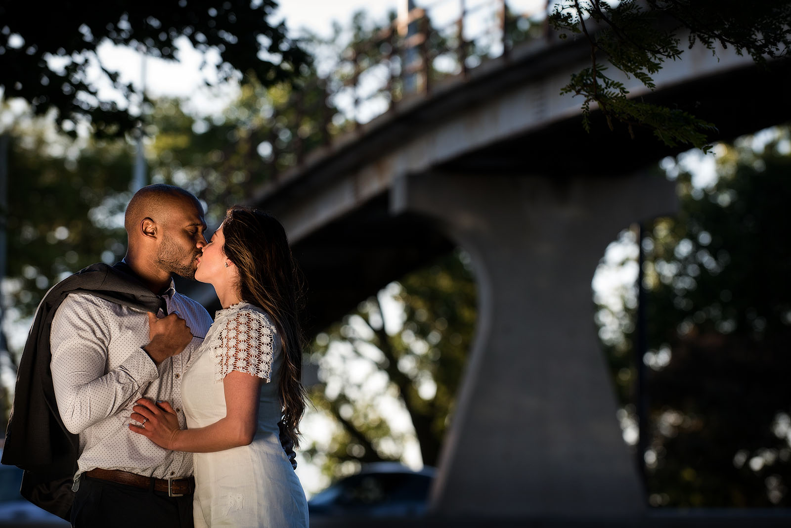 Best Chicago Engagement Session Location: Dayana and Dionte chose this incredible location in the Hyde Park neighborhood for their engagement session. I love the way the bridge creates a leading line directly to the two of them.