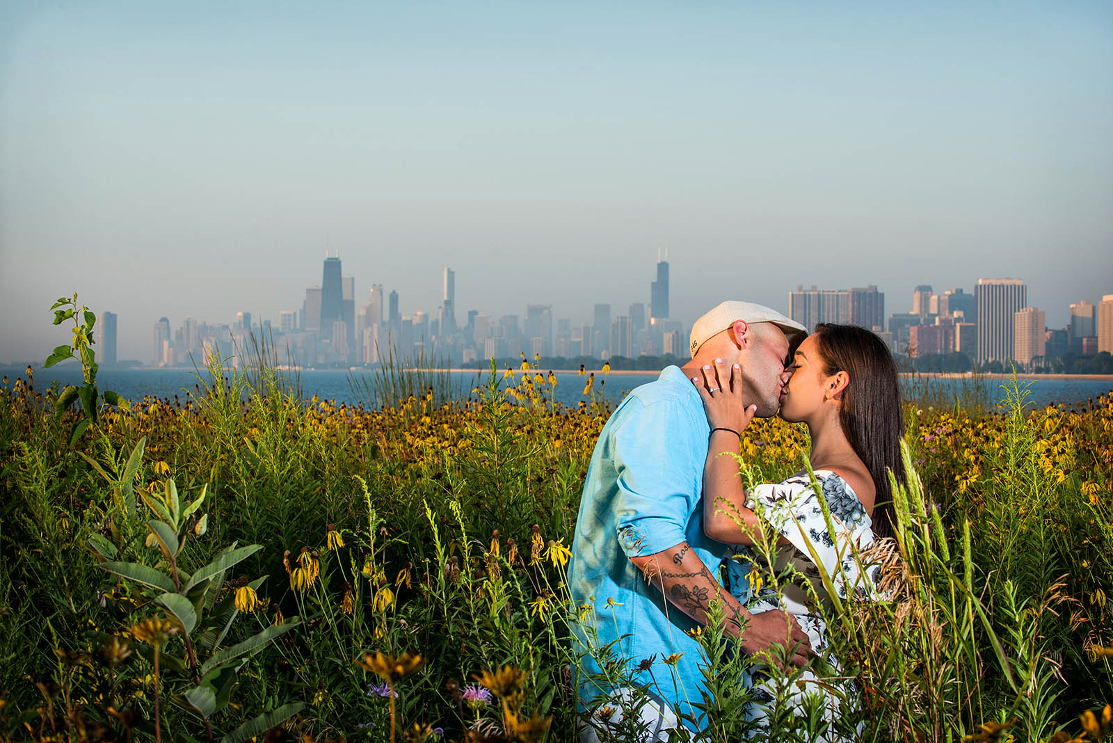 Best Engagement Photo in a Field of Flowers: Photographing Gina & Michael’s Engagement Session at Montrose Avenue Beach made me even more eager to capture their wedding next April on a beach in Florida