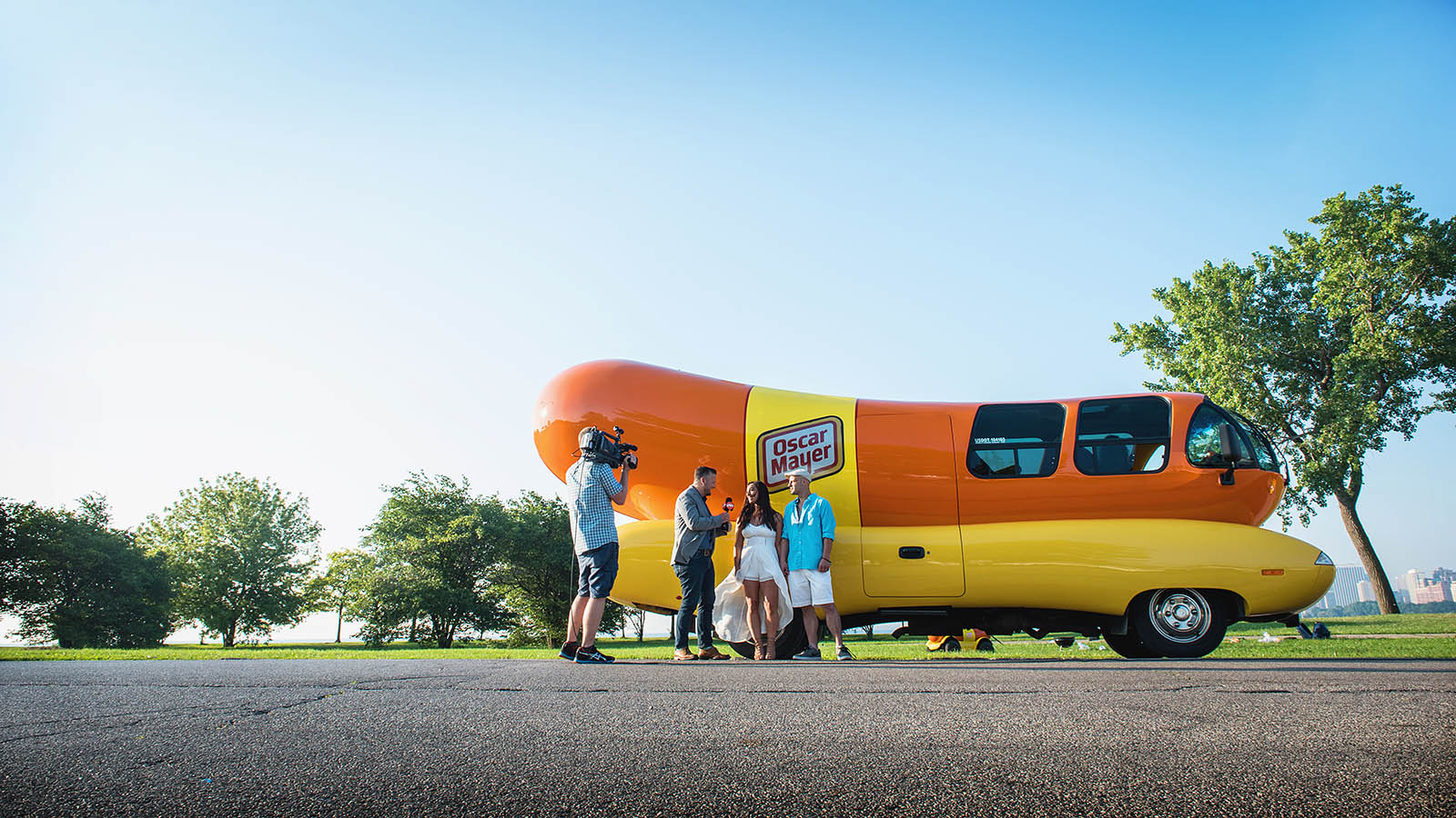 Best Wienermobile Photobomb: Gina and Michael were invited aboard the Oscar Mayer Wienermobile as they were interviewed following their sunrise engagement session