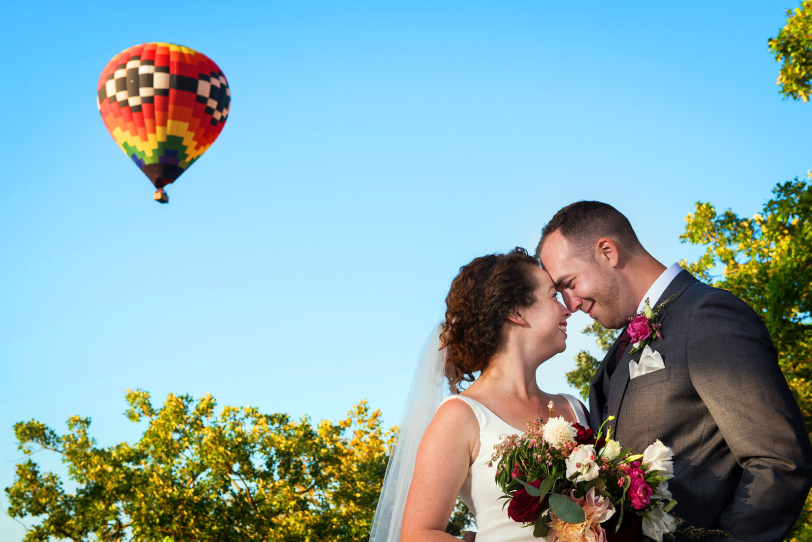 Best Hot Air Balloon Photobomb: Heather and Ben were balloon-bombed when this Hot Air Balloon floated over their heads during their wedding ceremony at Eagle Ridge Resort in Galena.