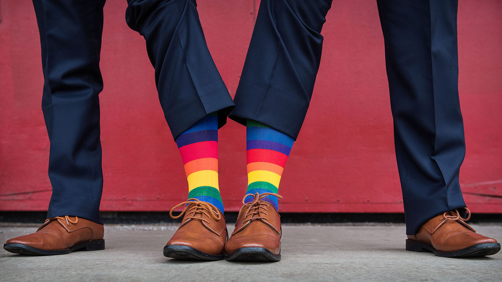 Best Wedding Socks (2 of 2): Scott and Chris were stylin’ in their “same-sox” rainbow wedding socks