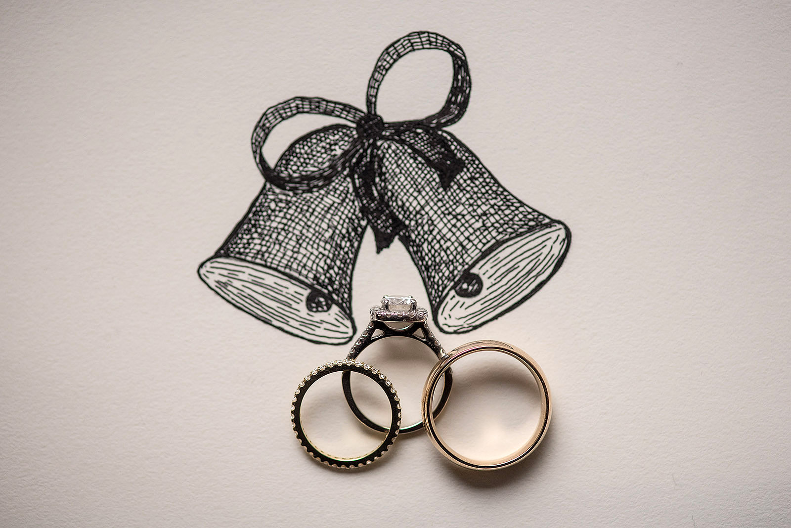Best Wedding Rings: Jillian’s wedding bands were photographed with an illustrated wedding invitation created in pen and ink by her talented husband, Joseph