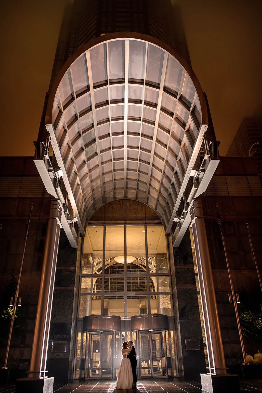 Best Night Portrait: Jean and Lance illuminated the Chicago night during their wedding reception at the Chicago History Museum