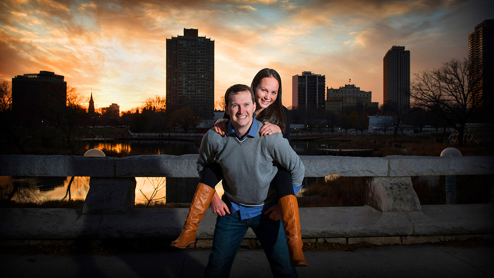 Best Skyline Smooch: Lisa planted a kiss on Jim on the LaSalle Street Bridge