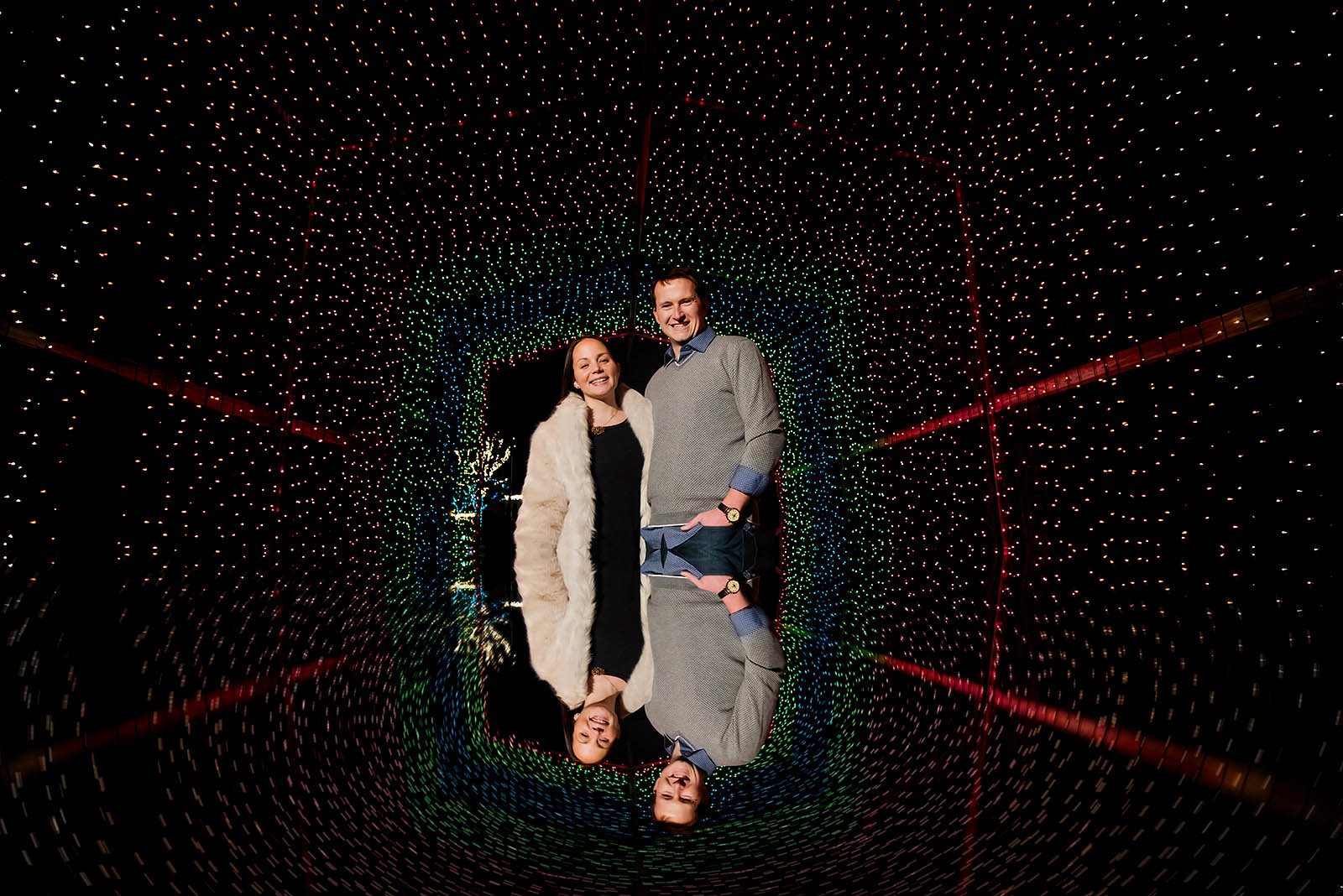 Best Trippy Engagement Photo: One part Holiday lights, a dash of reflection, mix generously and serve