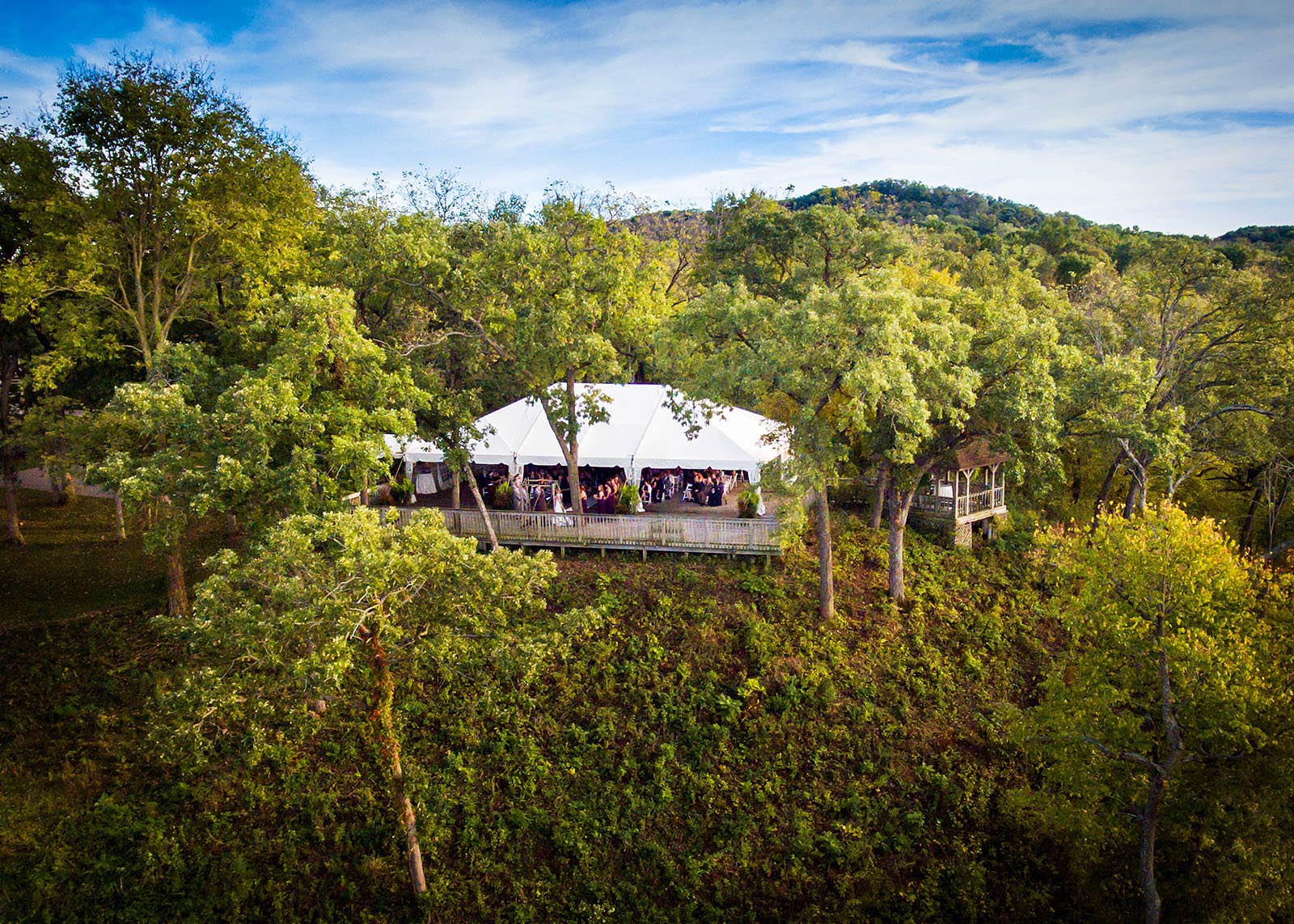 Best Aerial Wedding Photograph: Aly & Matt picked the perfect Fall date for their wedding at Eagle Ridge Resort in Galena to capture this incredible aerial photo of their ceremony