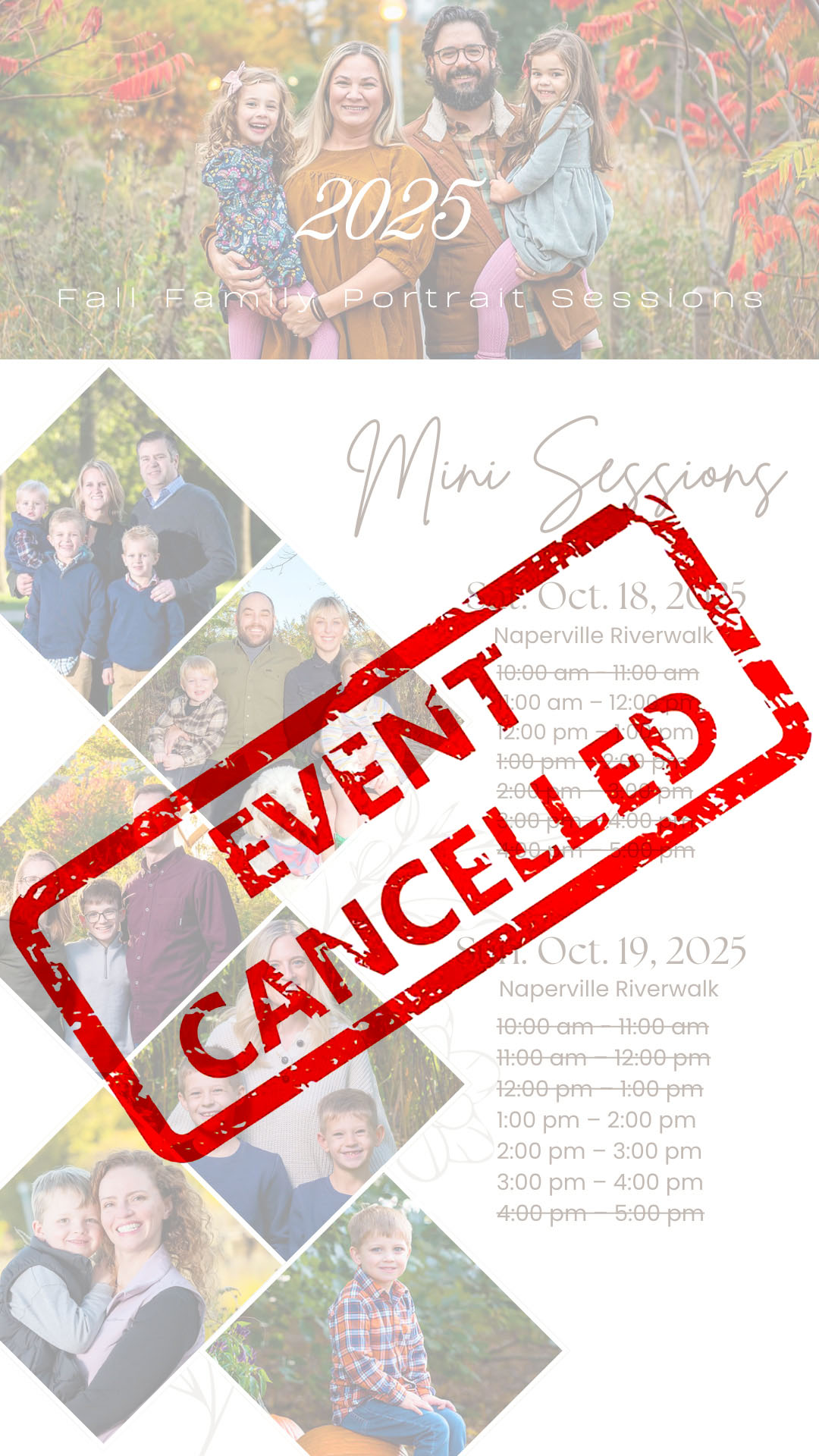 It truly breaks my heart to share this update regarding next weekend’s Fall Family Portrait Sessions.